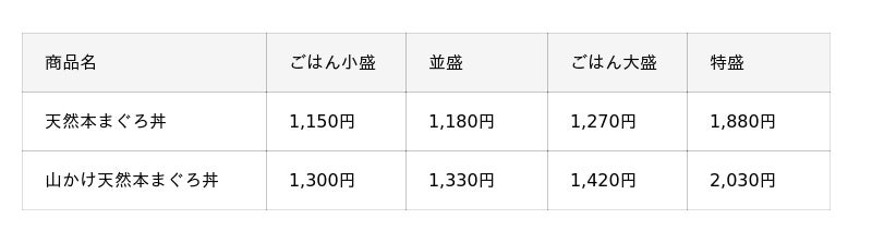 また、大盛のごはんに並盛の2倍の量の本まぐろを盛り付けた"特盛"もご用意しました。たっぷりの本まぐろで贅沢な気分をお楽しみいただけます。