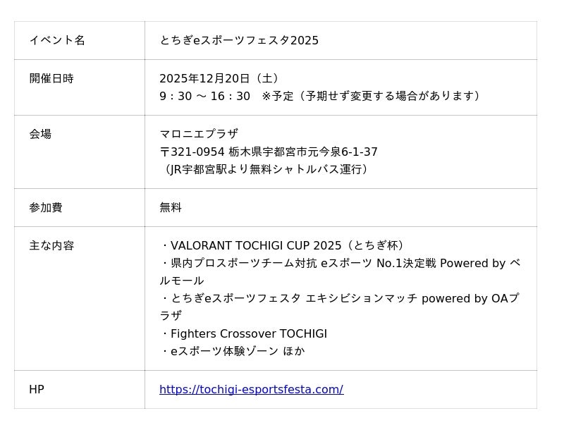 株式会社ePARA「とちぎeスポーツフェスタ2025」担当宛