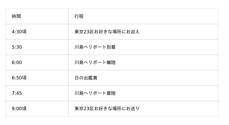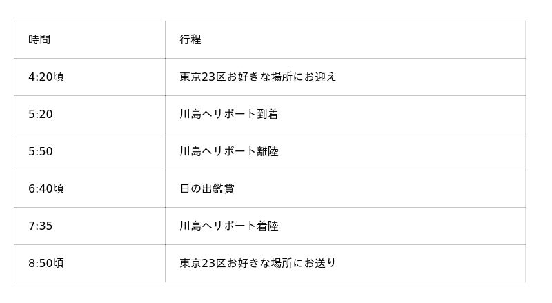 ヘリコプターによる初日の出フライト・東京23区⇄川島ヘリポート 送迎付き
