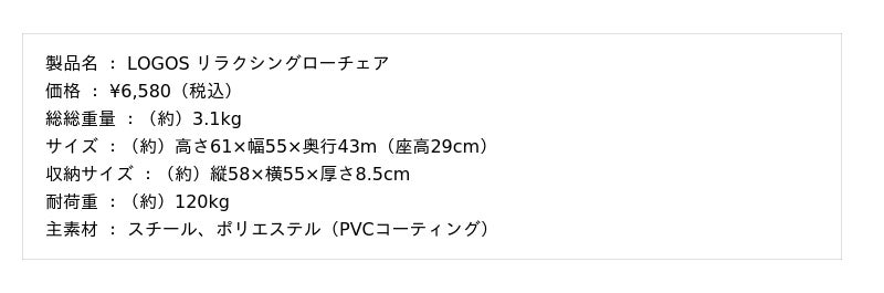 【 LOGOS リラクシングローチェア 】 https://www.logos.ne.jp/products/info/11691