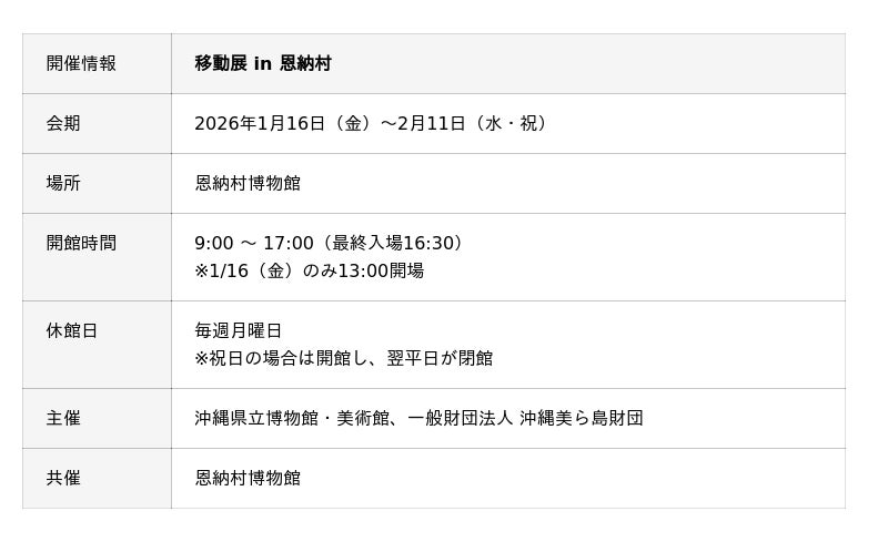 沖縄県立博物館・美術館(おきみゅー)では、おきみゅーの移動展 in 恩納村を開催いたします。