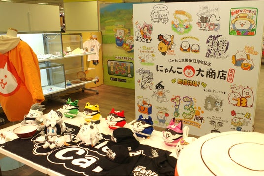 スマートフォン向けゲームアプリ『にゃんこ大戦争』の13周年を記念した本催事では、物販コーナーだけではなく、販売前の商品展示スペースやフォトスポット等、来場者の方々に楽しんでいただけるよう工夫を凝らしたスペースをたくさんご用意しています。