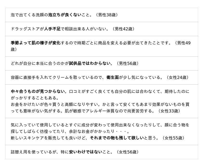☆スキンケア関連用品について困っていること・不満に感じること(全2,721件)