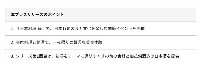 野村不動産ホテルズ株式会社(本社:東京都港区/代表取締役社長:石井康裕、以下「当社」)が運営する「庭のホテル 東京(以下「庭のホテル」)」は、2026年1月24日(土)に、「日本料理 縁(ゆくり)(以下「日本料理 縁」)」にて、「四季の庭と共に、五感で巡る美食の旅」と題した、一夜限りの特別イベントを開催いたします。記念すべき第1回目は、料理長の故郷である新潟をテーマにお届けします。