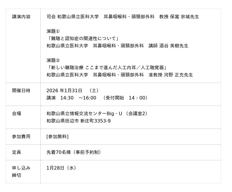 市民講座 1/31(土) 耳鼻科医が提案する、きこえの老化対策について~補聴器でもききとりにくい方へ~ (参加無料)