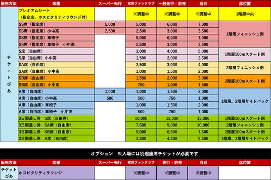 ※プレミアムシート、<オプション>ホスピタリティラウンジチケットは3月以降に販売を予定しております。