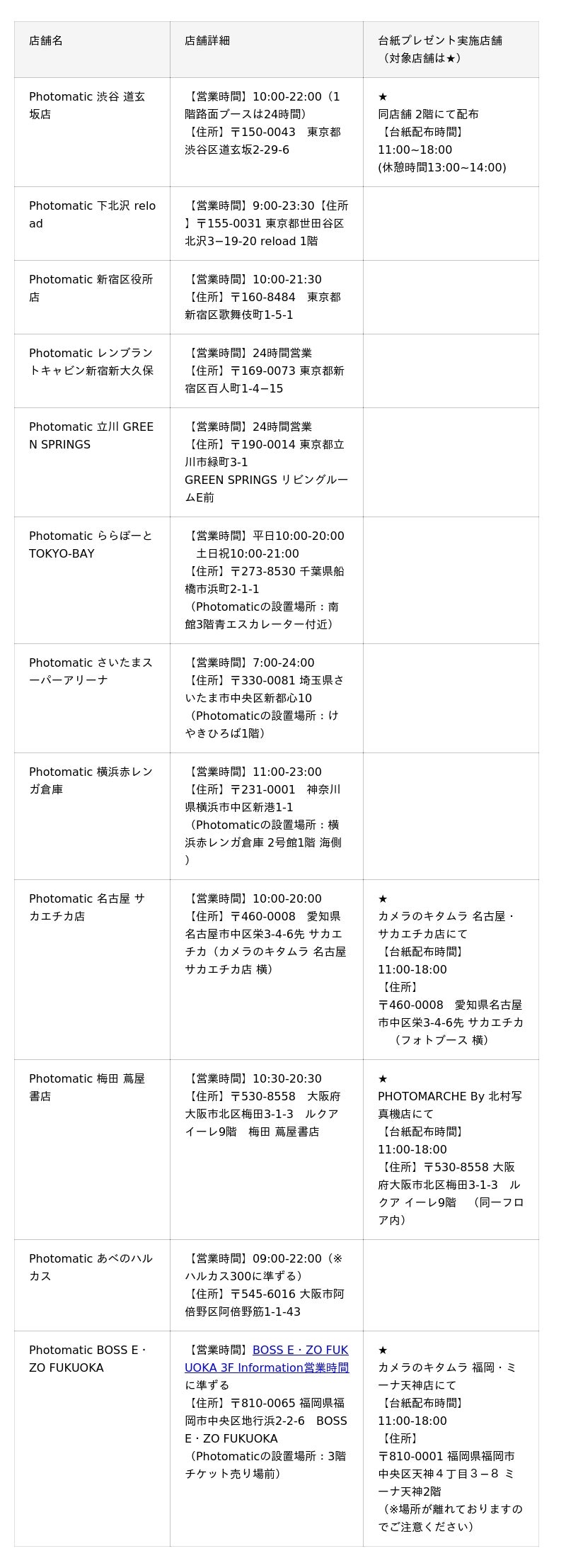 ※Photomatic 渋谷 道玄坂店のみ2026年1月3日(土)から