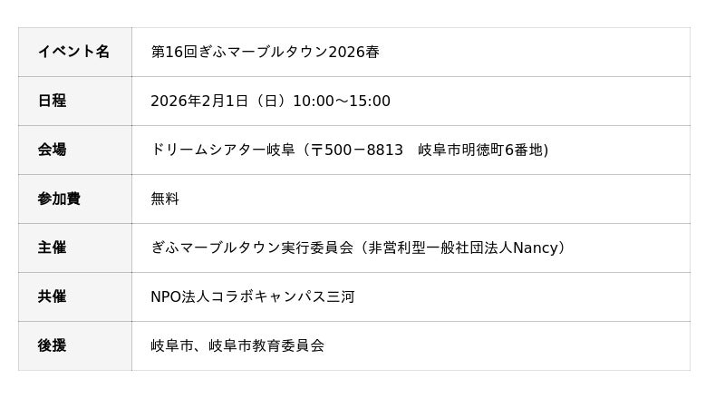 仕事に選挙に起業…岐阜の子どもたちの夢が、広がる、集まる、見つかる、伝える!「第16回ぎふマーブルタウン2026春」2026年2月1日開催