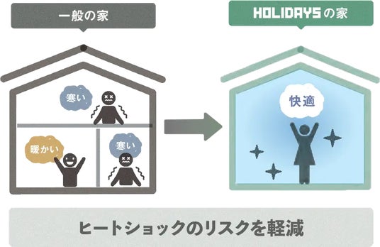 急激な温度変化による「ヒートショック」や、夏場に室内で起こりやすい「熱中症」のリスクを抑え、ご家族の健康を24時間守ります。