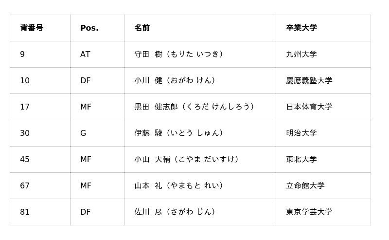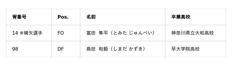 ※KAWASAKI FALCONS所属のアジア・パシフィック選手権大会(2026年1月開催)男子日本代表選手