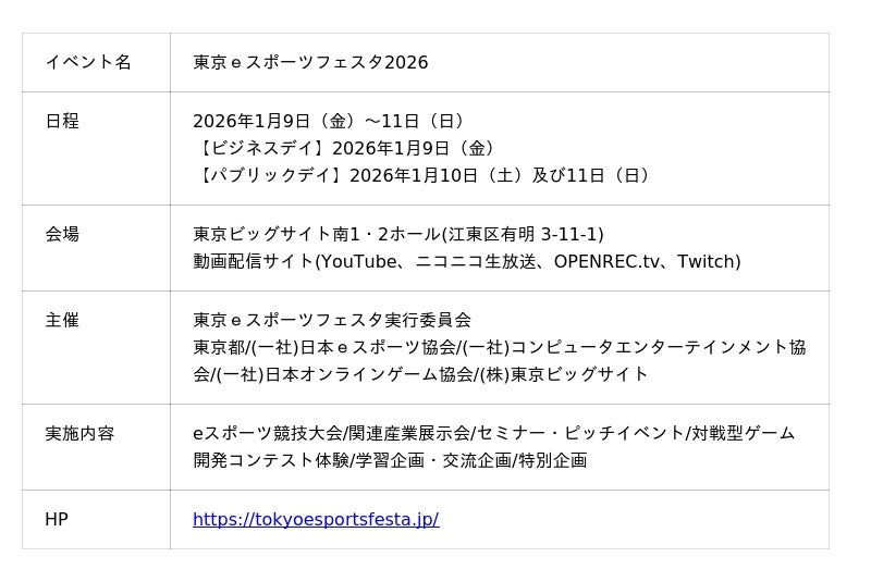 「東京eスポーツフェスタ2026」の概要