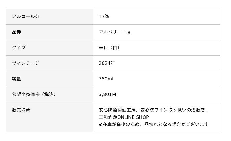 『安心院ワイン アルバリーニョ 下毛』(vin.2024)
