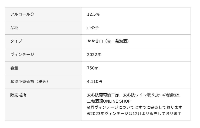 『安心院スパークリングワイン赤』(vin.2022)