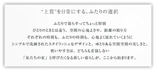 "上質を日常にする、ふたりの選択"という新たなコンセプトを加え、ふたりで暮らす生活をより心地よくするための空間・導線・設備を備えたDINKS向け賃貸マンションシリーズです。