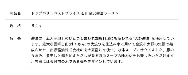 金沢の醤油と味噌を使ったカップ麺2品目を新発売