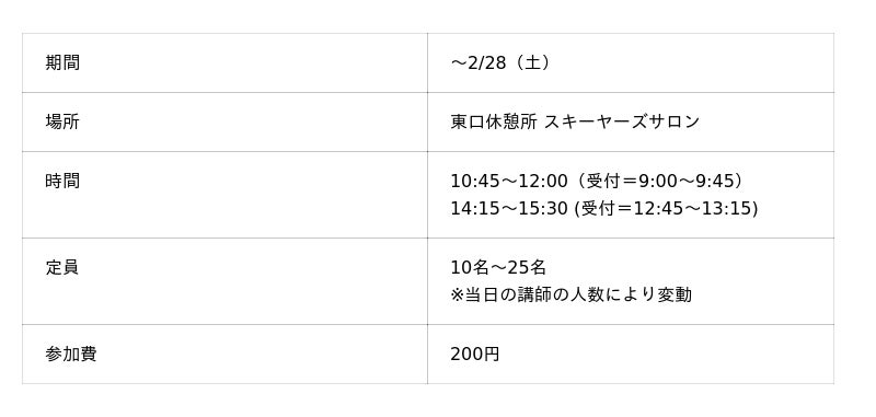 本格的な授業が始まる前のスキーの予習に最適です。