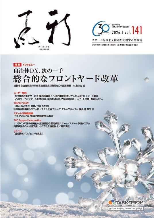 株式会社TKC(本社:栃木県宇都宮市/代表取締役社長:飯塚真規)は、地方公共団体向け情報誌『新風(かぜ)』2026年1月号(vol.141)を発行しました。