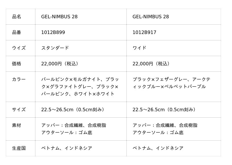 快適な履き心地を追求したランニングシューズ「GEL-NIMBUS 28」を発売
