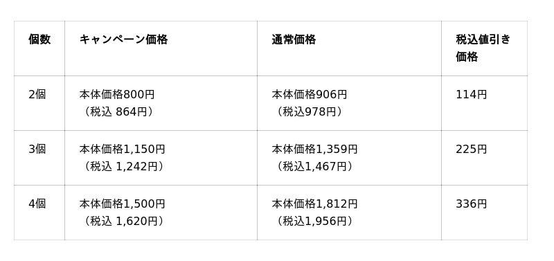 内容:テイクアウトの牛丼並盛を2個、3個、4個購入時にキャンペーン価格で提供します。