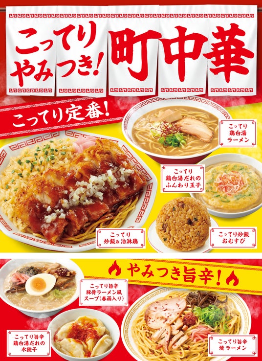 毎年2月に実施し、ご好評をいただいている中華メニューの祭典「こってり中華」フェアを今年は「こってりやみつき!町中華」として、パワーアップして実施いたします。