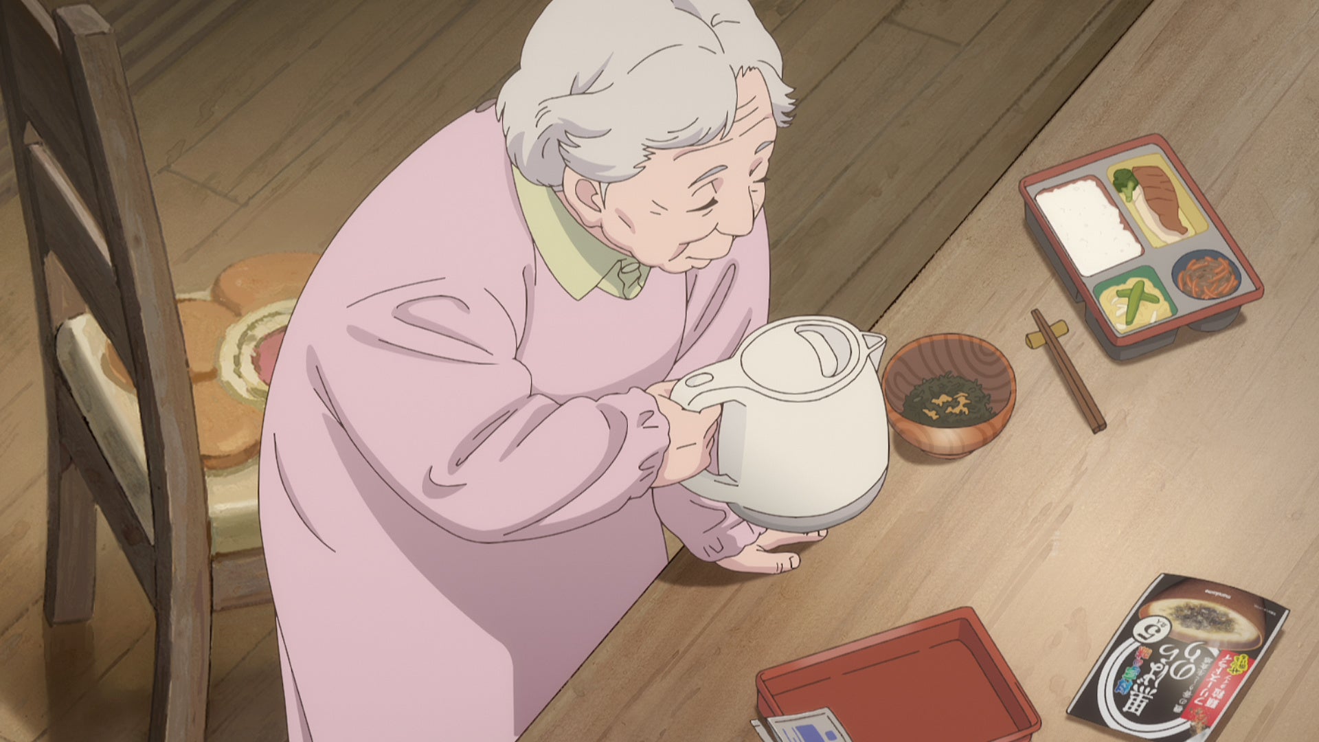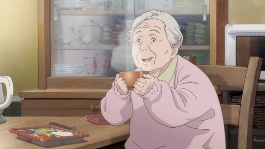 みそ汁をひと口すするおばあさん。