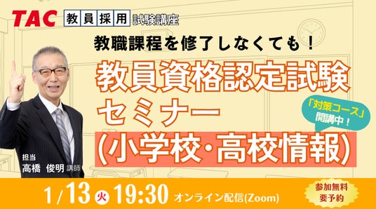 【TAC教員資格認定試験】オンラインセミナー「教員資格認定試験セミナー(小学校・高校情報)」を2026/1/13(火)に開催!