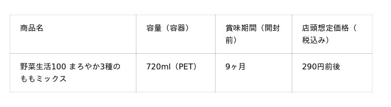 ~季節に合った果実の味わいでご家族の健康をサポート~ 季節限定「野菜生活100 まろやか3種のももミックス」新発売