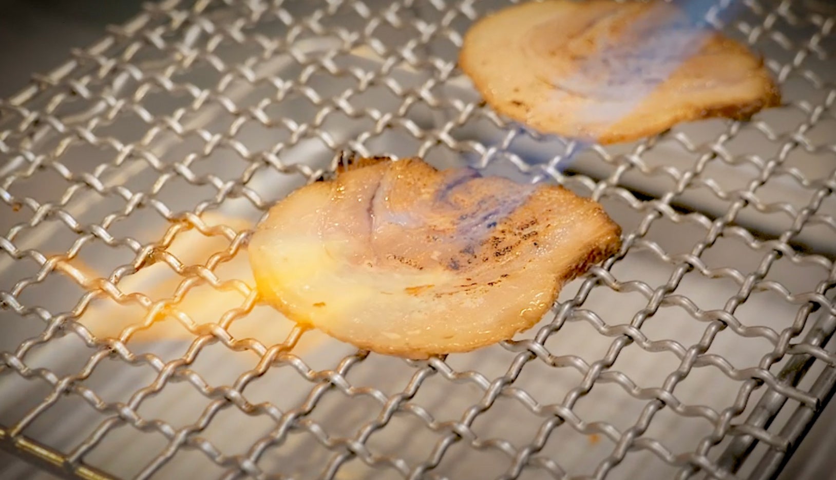 【こだわり4. とろ旨チャーシュー】赤身と脂身のバランスが良い厳選した豚肉を使用しています。特製ダレに漬け込んだチャーシューは旨みがしっかりとしみこんだとろけるように柔らかな仕上がりになっています。切り方、炙り方にこだわり抜いた自慢のチャーシュー。