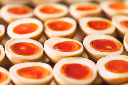 【こだわり3. 店舗仕込みの半熟味玉】店舗で新鮮な生玉子からとろとろの半熟になるよう茹で上げ、特製のタレに長時間漬け込み、黄味のコクが濃いとろとろ食感の味玉にしています。