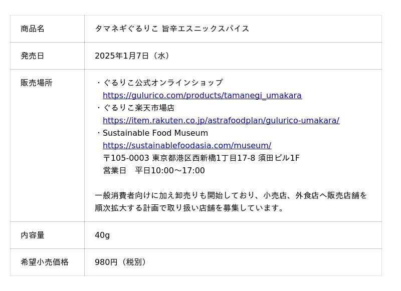 『「もったいない」を「おいしい!」に』をミッションに掲げるフードテックスタートアップのASTRA FOOD PLAN 株式会社(埼玉県富士見市、代表取締役社長:加納 千裕 以下ASTRA FOOD PLAN)は、2026年1月7日(水)に、玉ねぎ端材をアップサイクルした乾燥オニオンフレークを使用した新感覚クラフト調味料「タマネギぐるりこ」シリーズの第4弾となる新フレーバー「旨辛エスニックスパイス」を発売いたします 。