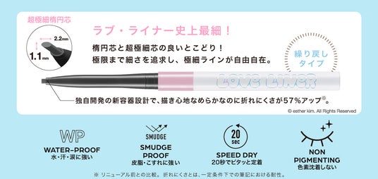 2025年3月にペンシルアイライナー、同年9月にリキッドアイライナーを刷新したラブ・ライナー。そのリニューアル後初となるコラボレーションデザインとして「エスターバニー」の登場です。ラブ・ライナーの"カワイイ"と、エスターバニーの大きな瞳とPOPでガーリーな世界観を掛け合わせ、甘さと遊び心を詰め込んだ特別なデザインに仕上げました。