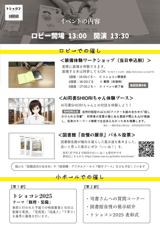 【概要】図書館員が日々培ってきた「スキル」に光を当てるコンテスト株式会社ヴィアックス(代表取締役:西門 直)は、同社が運営する全図書館スタッフを対象とした社内コンテスト「トショコン2025 -その仕事に、スポットライトを。-」を、2026年1月20日(火)に文京シビックホール 小ホールにて開催します。