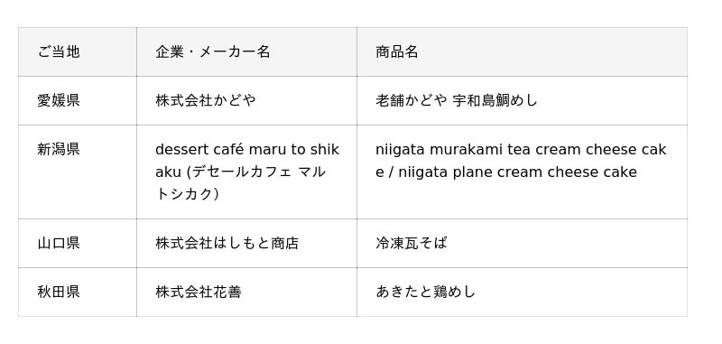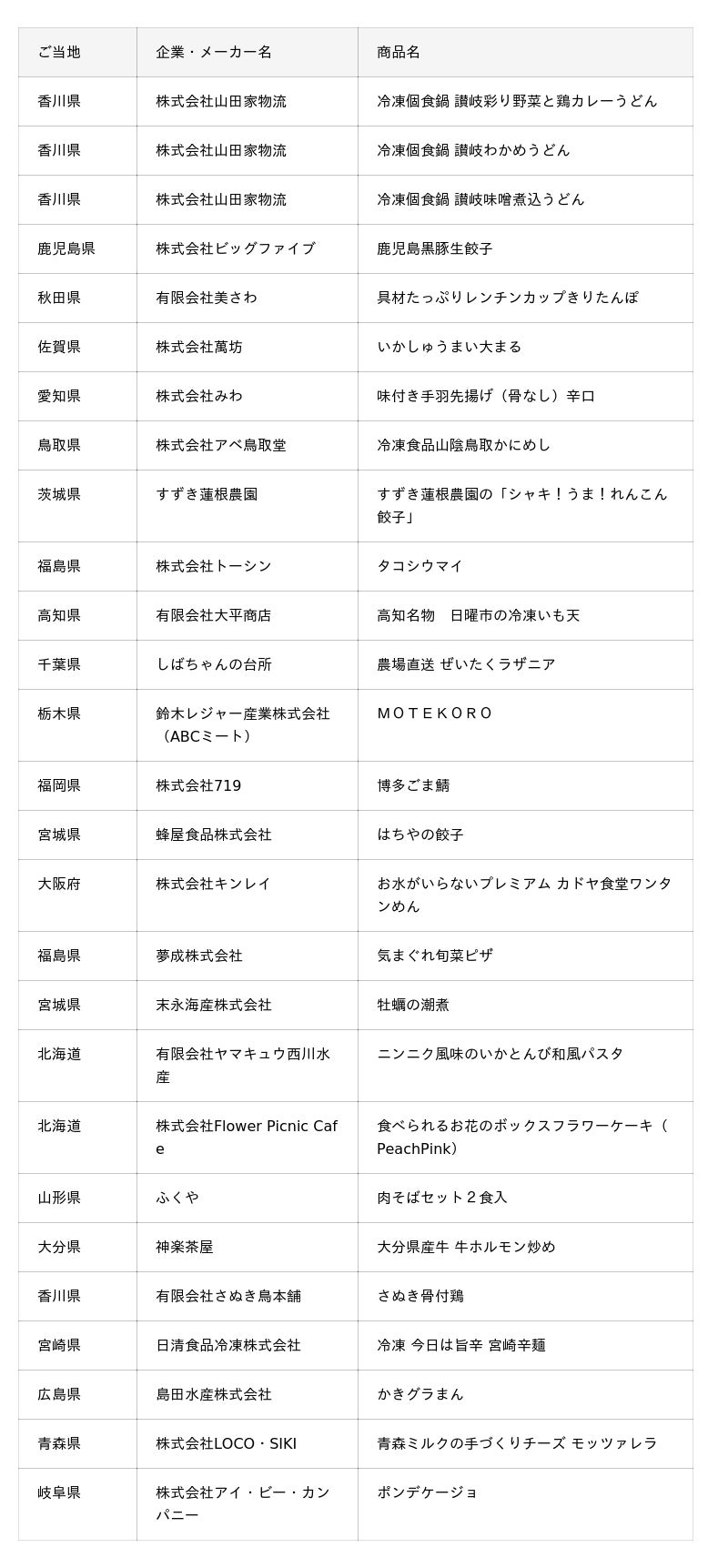 第2回「日本全国!ご当地冷凍食品大賞2025-2026」結果一覧