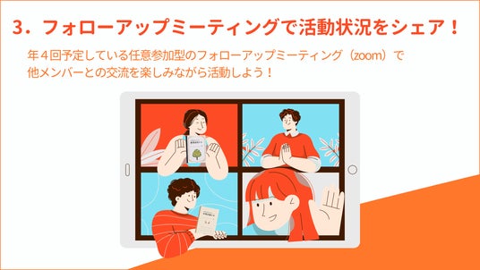 年4回、フォローアップミーティング(zoom)を予定しています。
