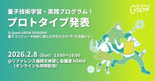 JellyWare株式会社(本社:東京都/代表取締役社長:崔 熙元)は、量子技術に関心を持つ若手人材を対象とした量子技術学習・実践プログラム 「Q-Quest GROW(キュークエスト・グロウ)」 の最終報告会(Demo Day)を、2026年2月8日(日)に福岡市内にて開催いたします。
