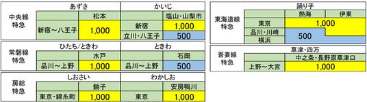 2 主なキャンペーン対象列車・区間、および交換ポイント数 【一例】