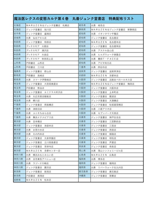 丸善ジュンク堂書店 4巻購入特典配布店リスト
