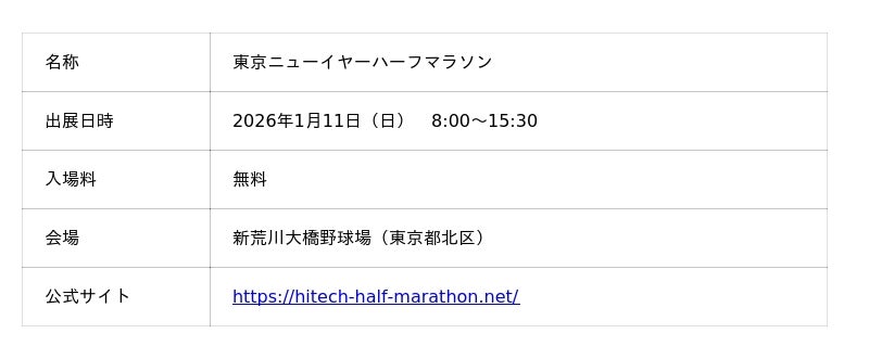 オープンイヤーイヤホンのShokz(ショックス)は2026年1月11日(日)に新荒川大橋野球場(東京都北区)で開催される「東京ニューイヤーハーフマラソン」に出展し、ブースでは試聴・購入いただけます。Shokzのイヤホンはランニングに最適なのはもちろん、高度なマイク性能により日常業務などにもご活用いただけます。ご購入者には素敵なShokzグッズを進呈いたします。