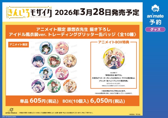 ▼アニメイト限定 原悠衣先生 描き下ろし アイドル風衣装ver. トレーディンググリッター缶バッジ(全10種)
