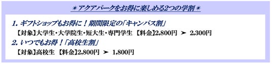 【マクセル アクアパーク品川】学生の今だから楽しめる、お得なチケット!期間限定の「キャンパス割」と、いつでも使える「高校生割」