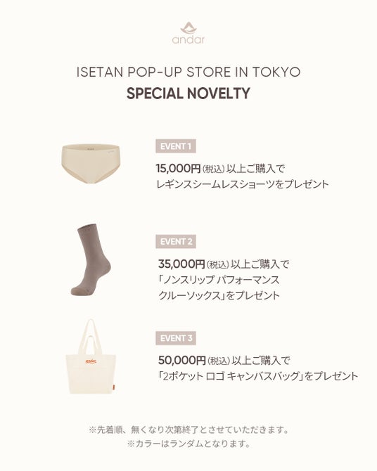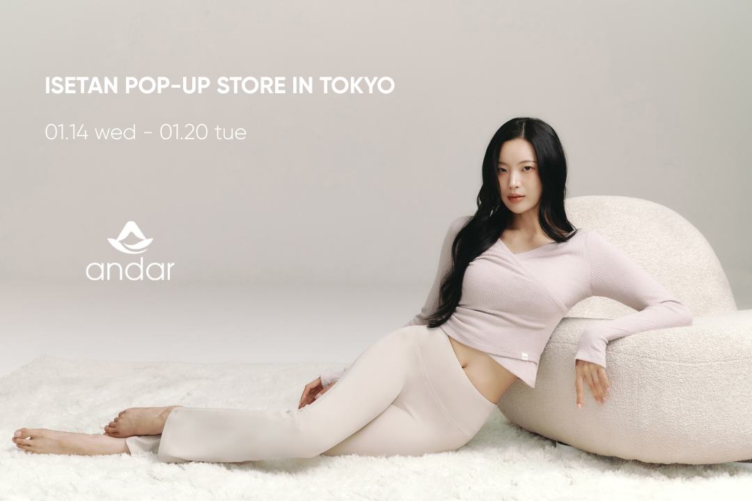 韓国発グローバルアスレジャーブランド「andar(アンダール)」は、1月14日(水)から1月20日(火)までの1週間、「andar TOKYO POP-UP STORE」をオープンいたします。昨年9月に開催したポップアップの反響を受け、 伊勢丹新宿店にて再び開催が決定しました。