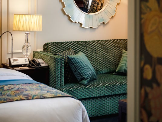 LIBERTYの世界観にたっぷり浸れるLIBERTYルームのデザインは、LIBERTYの英国デザインチームによって手掛けられました。部屋全体でLIBERTYの世界を表現するのは、日本のホテルでは初めての試み。東京ステーションホテルらしさを残しつつ、壁紙、カーテン、ソファ、クッション、ベッドスローやその裏地までLIBERTYが新たな息吹をもたらしました。ファブリックはすべて、このコンセプトルームのためにイギリスから取り寄せ、特別に設えられたもの。ヨーロピアン・クラシックでデザインされた東京ステーションホテルの客室に、新たな魅力をプラスした2部屋だけのエクスクルーシブな客室です。