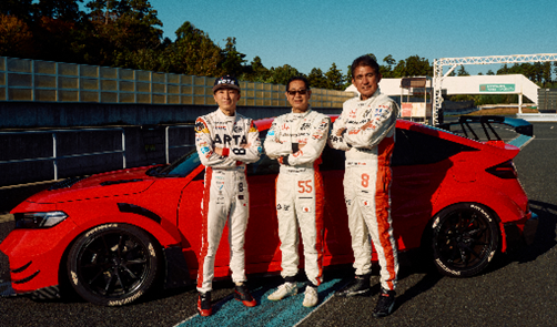 ベース車両にはSUPER GT GT500クラス参戦車両と同様にCIVIC TYPE Rを採用。開発は鈴木亜久里氏と土屋圭市氏が主体となり、デザインとパフォーマンスパーツを厳選。さらに現役ドライバー野尻智紀選手がサーキットで試作車をセットアップし、SUPER GTで培ったノウハウを惜しみなく投入しました。「見た目」と「走り」の両方に妥協のない仕上がりを実現しています。