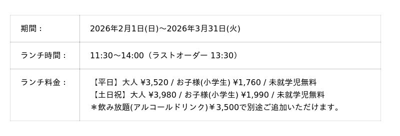 【ランチブッフェ 開催概要】