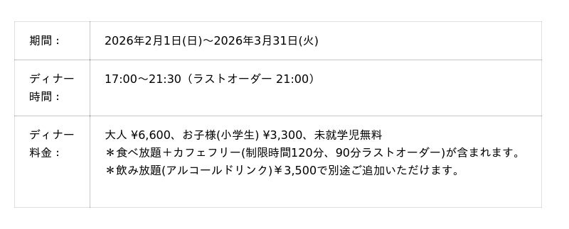 【ディナーブッフェ 開催概要】