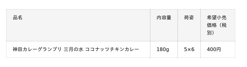 グランプリ優勝店の味わいをご自宅で ココナッツのクリーミーさを最大限に活かした一皿 神田カレーグランプリ「三月の水 ココナッツチキンカレー」2月9日 新発売