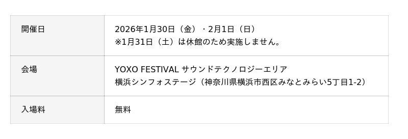 - 「YOXO FESTIVAL 2026」で音・音響技術を中心とした体験展示を実施 -