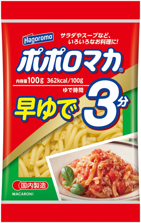 はごろもフーズ株式会社(本社:静岡県静岡市 社長:後藤佐恵子)は、ゆで時間3分のマカロニ『ポポロマカ』3種を発売します。