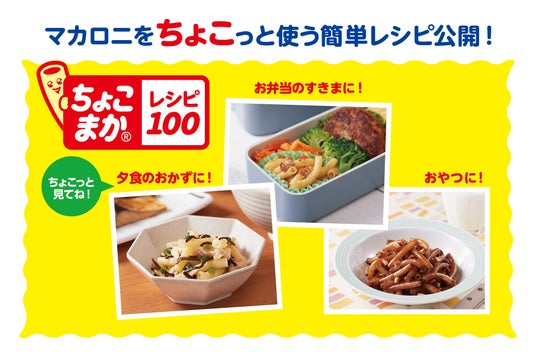 マカロニを使うメニューはサラダ、グラタン、ミネストローネなどがありますが、マカロニサラダでの使用が約半数です。もっとマカロニを手軽にさまざまなシーンでお使いいただけるように、「ちょこまか※レシピ100」を考案しました。お弁当のすきまを埋めたいとき、夕食にもう一品おかずを作りたいときなど、マカロニを"ちょこっと"使いたい時に便利なレシピです。「ちょこまかレシピ100」は当社ホームページ特設サイトで2月16日(月)より公開します。どのレシピも簡単に作れますので、ぜひご活用ください。