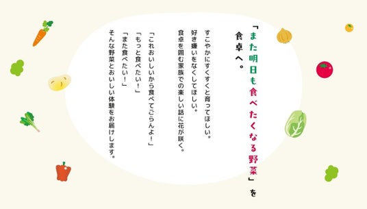 家族みんなで野菜の新しいおいしさを発見し、"また明日も食べたくなる"ひとときを感じていただけたら幸いです。